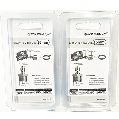 На выбор есть два стиля: один с диаметром сердечника 14 мм, а другой с диаметром сердечника 14 мм. Обычно он используется для соединения шлангов пистолета высокого давления, что играет важную роль при очистке под высоким давлением.