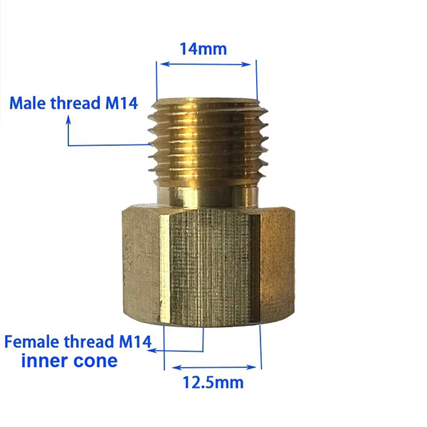 Конический латунный ниппель с внутренней резьбой от M14x1,5 до наружной резьбы M14