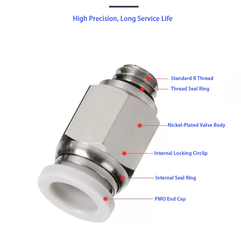 Таким образом, даже во влажной или пыльной среде в течение длительного времени он может оставаться стабильным и не подвержен ржавчине, что повлияет на стабильность соединения. Внутри используется специальное вогнутое уплотнительное кольцо с большей площадью контакта, что обеспечивает более высокую посадку и более прочное уплотнение. В то же время само изделие имеет стандартную резьбу R общей промышленной резьбы. В то же время сочетание стандартной резьбы R и внутренней стопорной пружины позволяет избежать износа и утечек, вызванных ослаблением деталей, что может обеспечить двойную защиту уплотняющих работ, что также означает, что срок службы продукта значительно продлевается. Наконец, резьба серии разъемов Micro Mini предварительно покрыта клеем из ПТФЭ. Тетрафторэтилен, материал, известный как «пластмассовый король», сам по себе обладает очень хорошей химической стабильностью и определенной смазывающей способностью, а это означает, что он может не только оптимизировать уплотняющий эффект резьбы. В результате он также может в определенной степени снизить износ резьбы и дополнительно продлить срок службы изделия. Этот продукт обладает превосходными герметизирующими характеристиками, поэтому он может сохранять герметичный эффект «капельной защиты» при высокочастотной работе в условиях работы пневматической системы под высоким давлением. Диапазон допусков самой серии Micro Mini Connector находится в диапазоне температур 0–60°C. Кроме того, максимальное гарантированное давление может достигать 1,32 МПа, а нормальный диапазон рабочего давления составляет 0–0,9 МПа, что может полностью обеспечить стабильную работу оборудования, требующего условий работы под высоким давлением, такого как пневматические инструменты и автоматические цилиндры. В то же время, чтобы удовлетворить потребности в прокладке трубопровода в сложных условиях работы, соединение с дроссельным клапаном поддерживает регулировку вращения на 360 °, что означает, что оно может преодолеть ограничение традиционной фиксации угла соединения, а направление трахеи можно свободно регулировать в соответствии с местом установки оборудования. Наконец, подключение изделия также осуществляется двойным способом. Его можно подключить путем затягивания резьбы или использовать прямое соединение. Тип прямого разъема может поддерживать блокировку трахеи, а трубку можно вытащить, нажав на торцевую крышку. Этот простой метод соединения значительно повышает эффективность работы и экономит время на установку и демонтаж. Genuinsky предлагает высококачественную продукцию с высокой точностью, длительным сроком службы и прочным уплотнением для точной передачи жидкости.