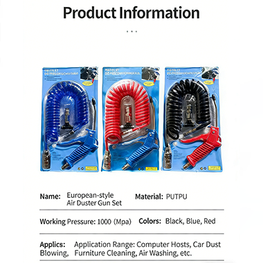 ГенуинскогоКомплект пневматического продувочного пистолета европейского типаможет охватывать различные сценарии использования, будь то ежедневная уборка или работы по техническому обслуживанию промышленного предприятия, от легкого удаления пыли до умеренного удаления пыли.