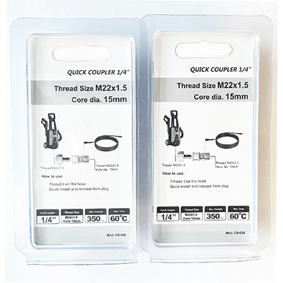Муфта 1/4 этих двух спецификаций имеет разные размеры. Один М22×1,5 диаметром 22 мм, из них диаметр сердечника 15 мм. Второй — M14×1,5, диаметром 14 мм и с коническим отверстием. Конструкция продукта двух размеров очень точна, поэтому ее можно точно адаптировать к соответствующим чистящим машинам и использовать для соединителей шлангов для пистолетов для мойки под высоким давлением. Материал самого изделия – латунь. Латунный материал обладает хорошей коррозионной стойкостью. При очистке под высоким давлением часто приходится работать во влажной среде. Таким образом, коррозионная стойкость самого продукта может нормально работать во многих суровых рабочих условиях. В то же время латунь обладает хорошей пластичностью и твердостью, а также в потоке воды под высоким давлением. Долговечность самого продукта также может сохраняться при ударе, и его нелегко сломать, что приводит к утечке воды и снижению затрат на замену оборудования. Общие сценарии использования включают уборку дома, очистку промышленного оборудования или очистку наружных объектов. Во время этих процессов очистки можно быстро выполнить установку или демонтаж. Пользователи могут быстро выполнить работу по подключению без помощи инструментов, что значительно повышает эффективность работы и экономит время. В то же время размер соединителя 1/4 этих двух спецификаций также очень подходит. Пользователи могут легко и гибко выполнять операцию соединения одной рукой.